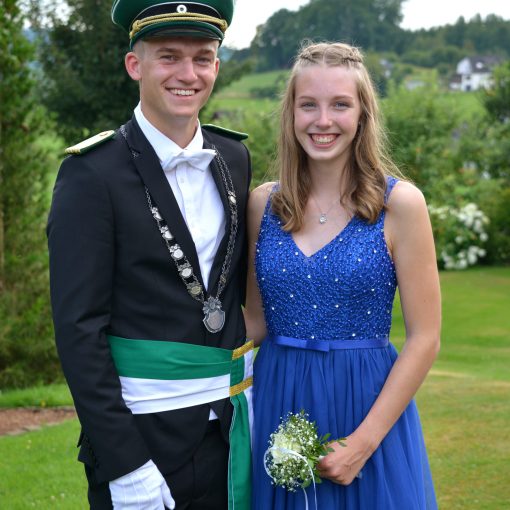 Beide Söhne verständigten sofort den Hofstaat und organisierten zu Hause die notwendigen Aufgaben, so dass Jörg und Bettina entspannt ihr Schützenfest feiern konnten. Das Kleid war bereits ausgesucht, abgesteckt und musste nur noch abgeholt werden. Am Nachmittag gingen beide dann als neues Königspaar im Hofstaat des Vorjahreskönig Pascal Fleischmann und Linda Schröder mit, im Zuge der Umstellung des Festablaufs hatte der Vorjahreskönig seinen Festzug mit Hofstaat am Samstag, der neue König seinen Festzug mit Hofstaat am Sonntag. Viele helfende Hände aus dem Vorstand und der Familie unterstützten das neue Königspaar zu Hause, so dass sich Jörg und Bettina auch am Sonntag um nichts kümmern mussten und selbst der zweite Vorsitzende Florian Keßler seinen König souverän vertrat. An dieser Stelle herzlichen Dank an alle Helfer, insbesondere an Florian Keßler, der im gesamten Königsjahr den ersten Vorsitzenden würdig vertrat.