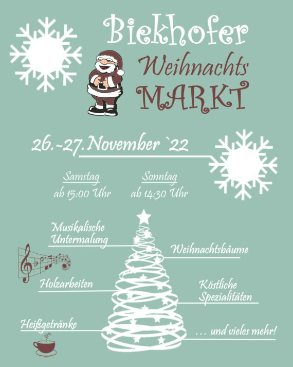 Liebe Gäste! Vom 26. November bis zum 27. November 2022 findet unser Weihnachtsmarkt statt. Wir freuen uns außerordentlich Sie auch in diesem Jahr auf unserem „kleinen aber feinen“ Weihnachtsmarkt begrüßen zu dürfen. Neben einem reichhaltigen Angebot köstlicher Speisen und Getränke, bietet sich auch die Gelegeheit das ein- oder andere kleine Geschenk zu finden. Kommen Sie gerne am 1. Adventswochende in […]
