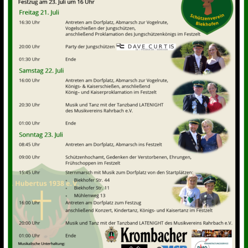 Zum Auftakt unseres Schützenfestes am Freitag des vierten Juliwochendes lösten mit dem 47. Schuss Noah Dornseiffer und seine Königin Pia Cramer das Jungschützenkönigspaar Jakob Springob und Paula Dornseiffer ab.
